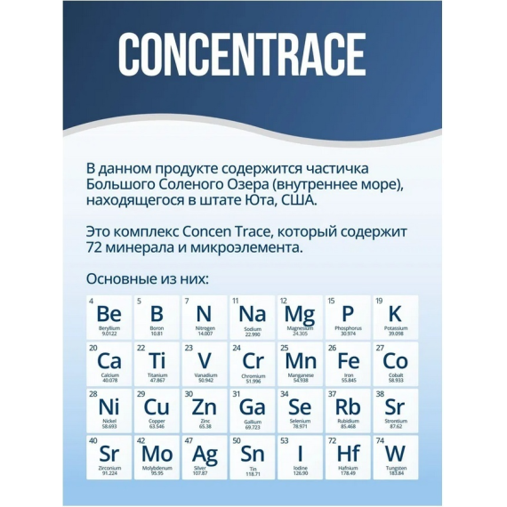 В идеале минералы должны поступать из сыроедения. Однако питаться сырыми продуктами недостаточно, так как, согласно исследованиям, запасы минералов в почве истощены. А раз их нет в почве, их нет и в пище. На помощь приходит ConcenTrace: принимая ConcenTrace каждый день, вы получаете полный спектр ионных минералов, которые представляют собой такие же биодоступные ионные минералы, которые содержатся в пищевых продуктах!